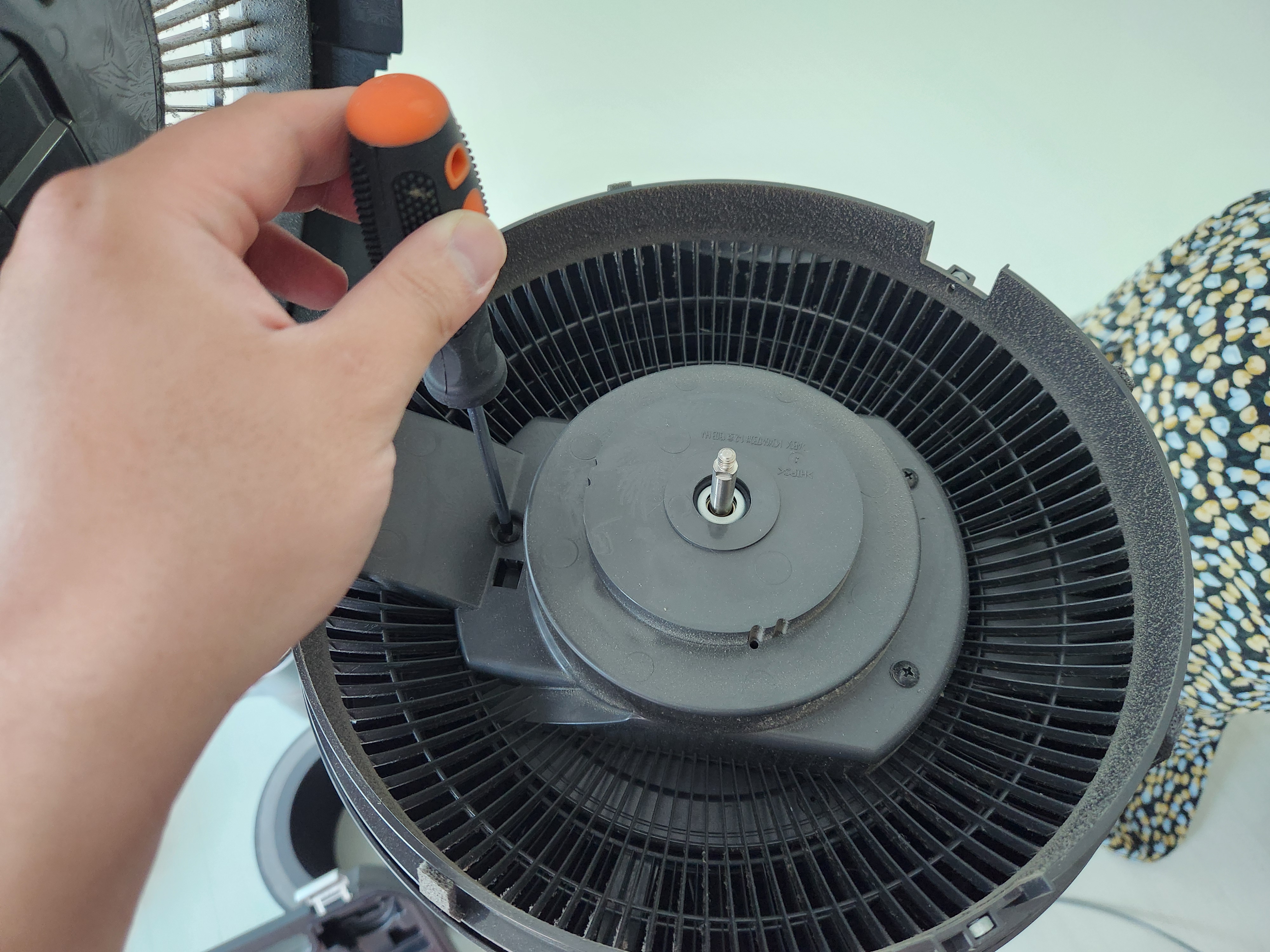 공기청정기 팬을 위로 들어 올리고 나면 볼트 3개가 보입니다. 3개도 마찬가지로 풀어줍니다.