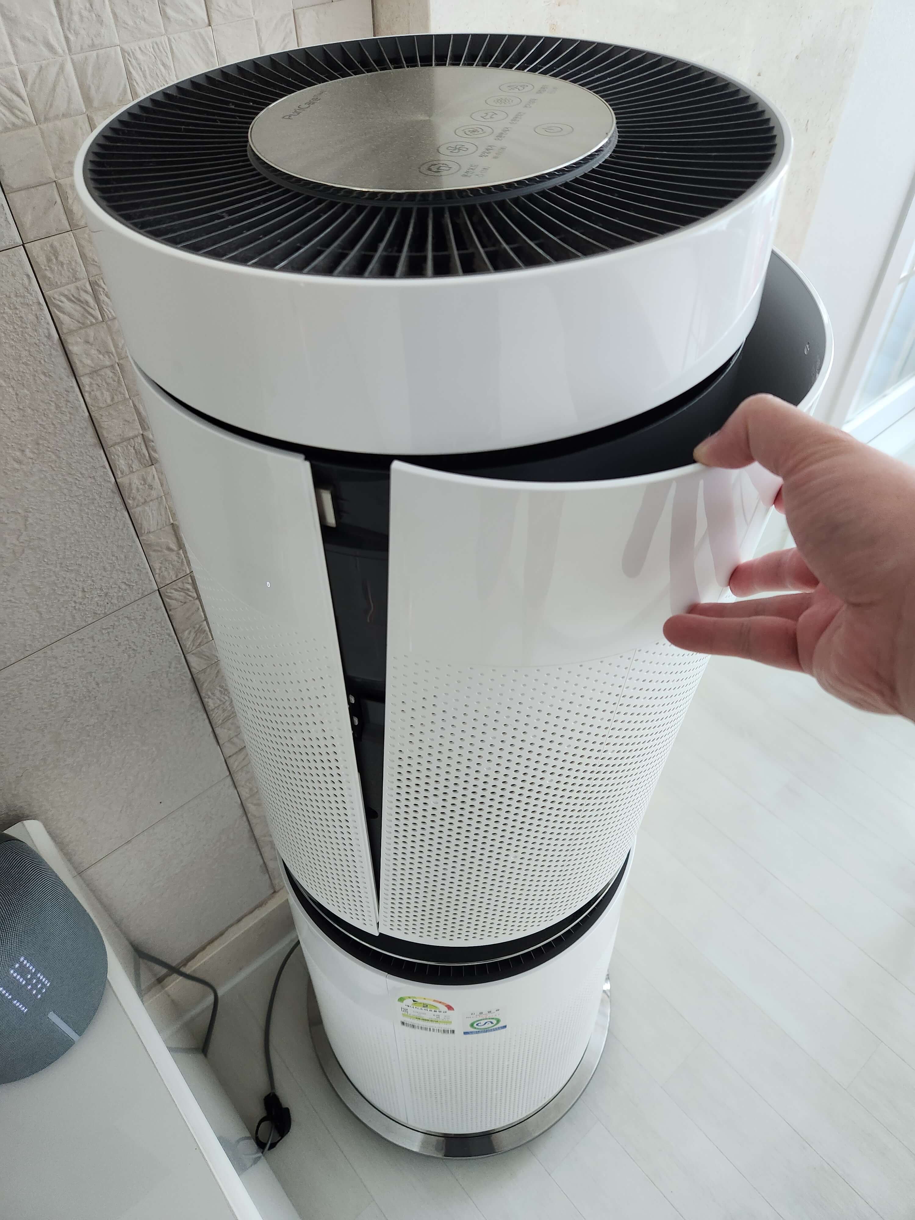 공기청정기 옆면은 자석으로 부착되어 있기 때문에 쉽게 손으로 떼어내서 분해할 수 있습니다.