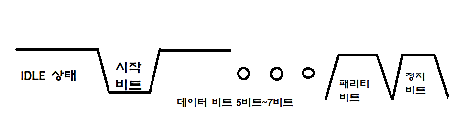 아무런 데이터를 보내지 않는 상태를 IDLE 상태라고 하며 그 상태를 유지하는 경우 신호 로직 1 상태로 이어집니다.